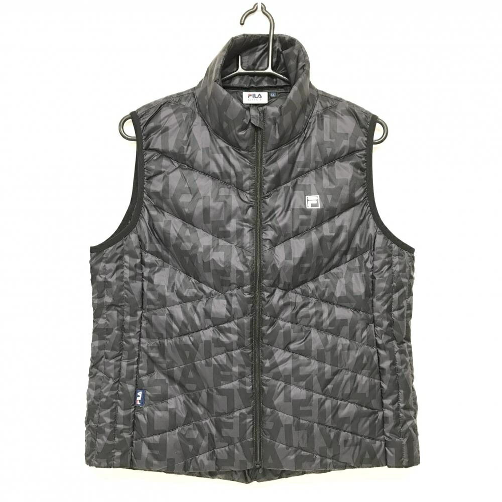 ã€æ–°å“】フィラゴルフ ダウンベスト グレー×黒 ãƒã‚´ç·æŸ„ æ’¥æ°´åŠ å·¥ レディース LL ゴルフウェア FILA GOLF