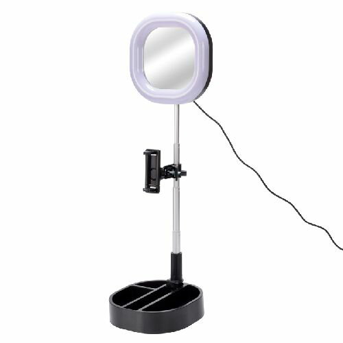 エツミ VE-2283-B ブラック VLOG ã‚ャワミライト スクエア LEDリングライト 折りãŸãŸã¿ ミラー付ã VE2283B