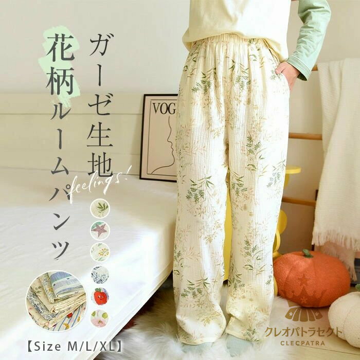 ルームパンツ ガーゼコットン パジャマ レディース ãƒãƒ³ã‚°ãƒ‘ンツ å˜å“ ルームウェア レディース 春秋 ãŠã—ゃれ 長ズボン 花柄 坿„›ã„ éƒ¨å±‹ç€ å¯é–“ç€ å¯å·»ã å¿«é© å¤§ãã„サイズ コットン 2é‡ã‚¬ãƒ¼ã‚¼ å¿«é© ç·æŸ„ 春 å¤ ç§‹ ウエストゴム柔軟 ç¶¿ コットン