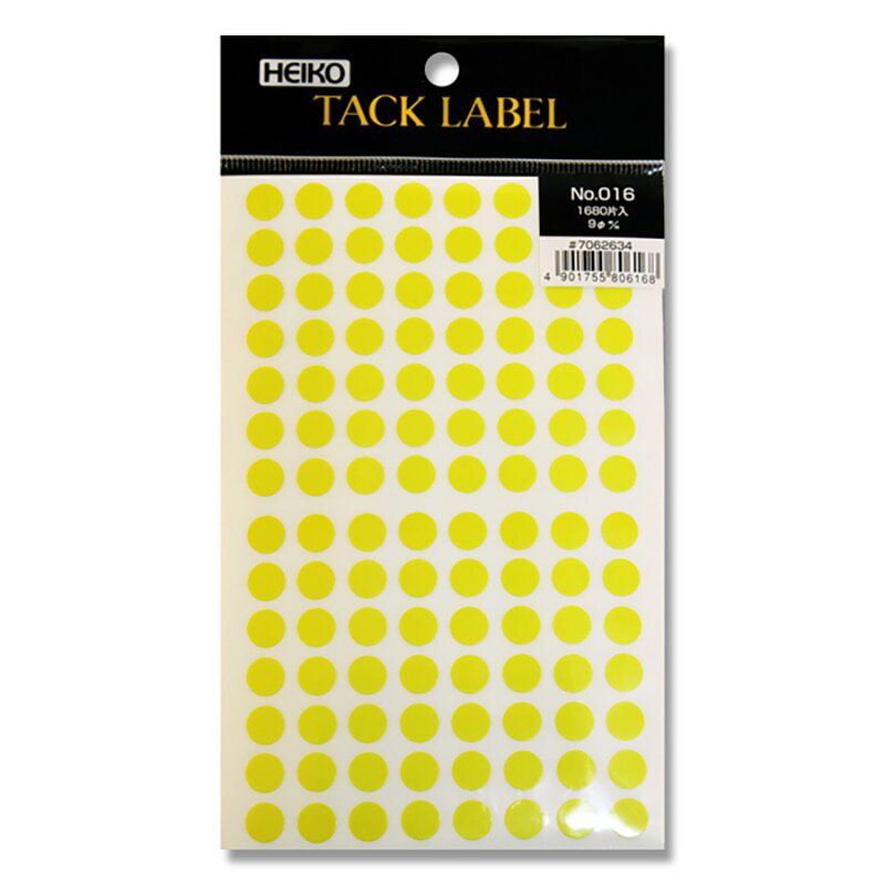 ã€é€æ–™ç„¡æ–™ã€‘HEIKO タックラベル(シール) No.016 丸 黄 9mm 1680片