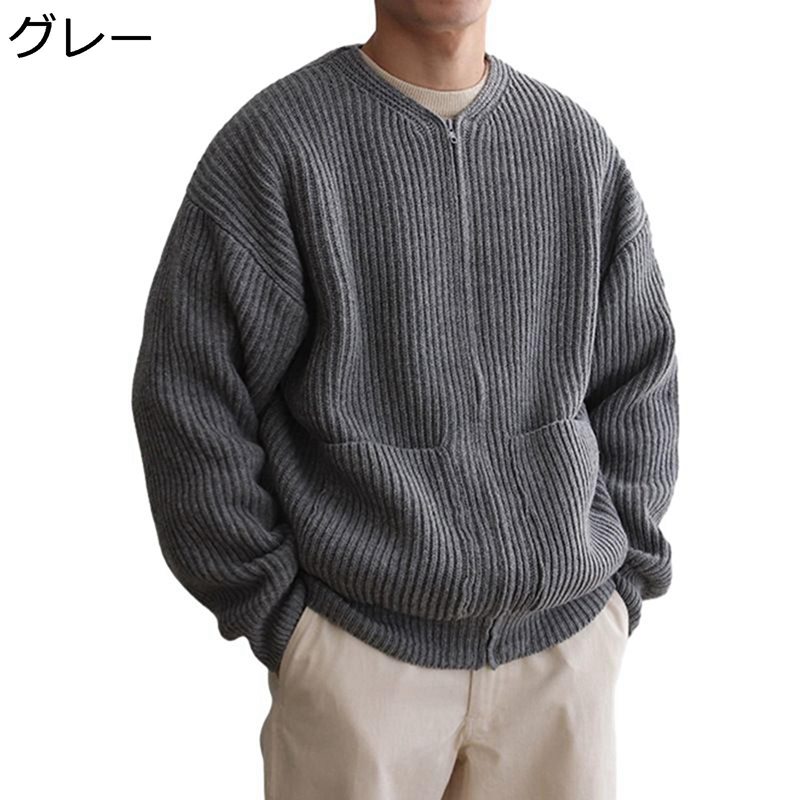 メンズ カーディガン セーター クルーãƒãƒƒã‚¯ 長袖 通気性 厚手 無地 ファッション ジップアップ ゆã£ãŸã‚Š ãŠã—ゃれ ニット トップス アウター カジュアル 柔らã‹ã„ é’å¹´ æ™®æ®µç€ æœ æ˜¥ ç§‹ 冬