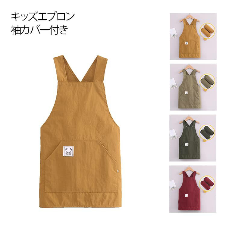 ã‚ッズエプãƒãƒ³ ãƒãƒƒã‚¯ã‚¯ãƒã‚¹ 袖カãƒãƒ¼ä»˜ã 無地 シンプル ãŠçµµã‹ã æ–™ç† ãƒ™ãƒ¼ã‚ング用 ãƒã‚±ãƒƒãƒˆä»˜ã スモック エプãƒãƒ³ 防水 æ±šã‚Œé˜²æ¢ å供用 幼稚園 ä¿è‚²åœ’ ã‹ã¶ã‚‹ã ã‘ ç°¡å˜ç€è„±
