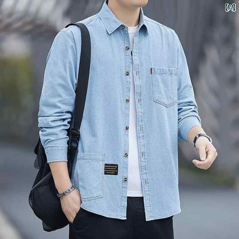シャツ メンズ 男性用 デニム薄手 ライトアウター スタッズ シャツジャケット カジュアル ストリート系 ファッション 長袖 普段使ㄠ羽織り ノーアイãƒãƒ³ ãŠæ‰‹å…¥ã‚Œç°¡å˜ æ˜¥å¤ ãƒ–ãƒ«ãƒ¼ç³»