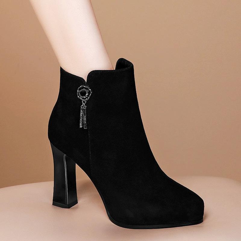 ブーツ レディース 秋冬 スエード調 ショートブーツ ãƒã‚¤ãƒ’ール 太ヒール 厚底 ラインストーン æš–ã‹ã„ é»’ 防水 滑りæ¢ã‚ カジュアル 普段使ㄠデート