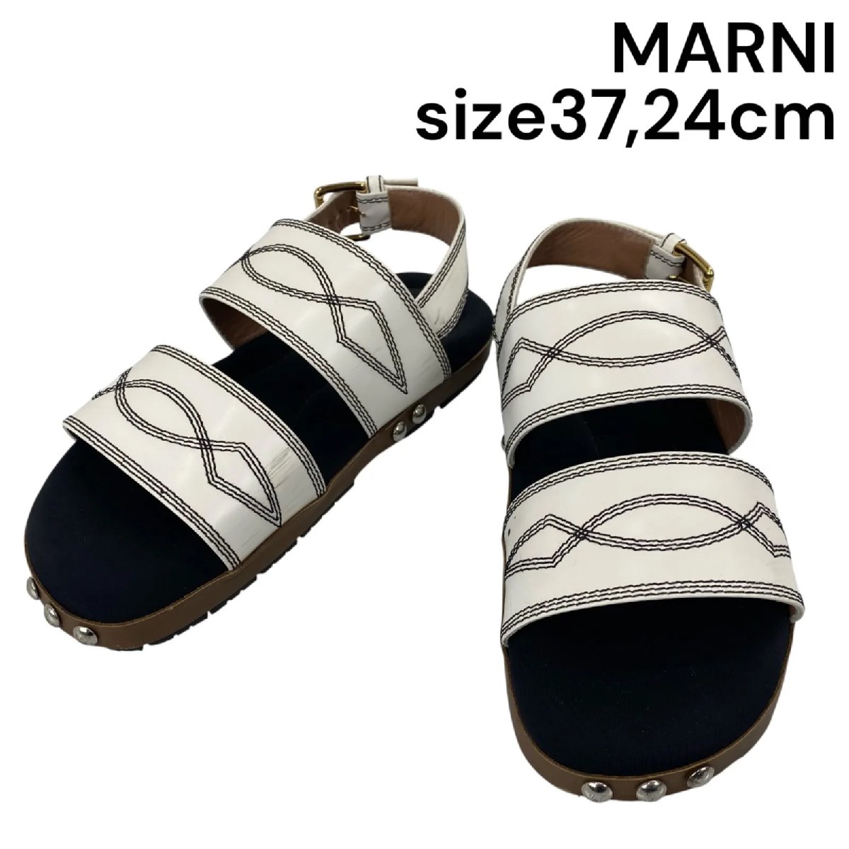 ã€ä¸å¤ã€‘マルニ MARNI フラットサンダル ステッムホワイト カーフ 37ã€24cm レディース 5D717
