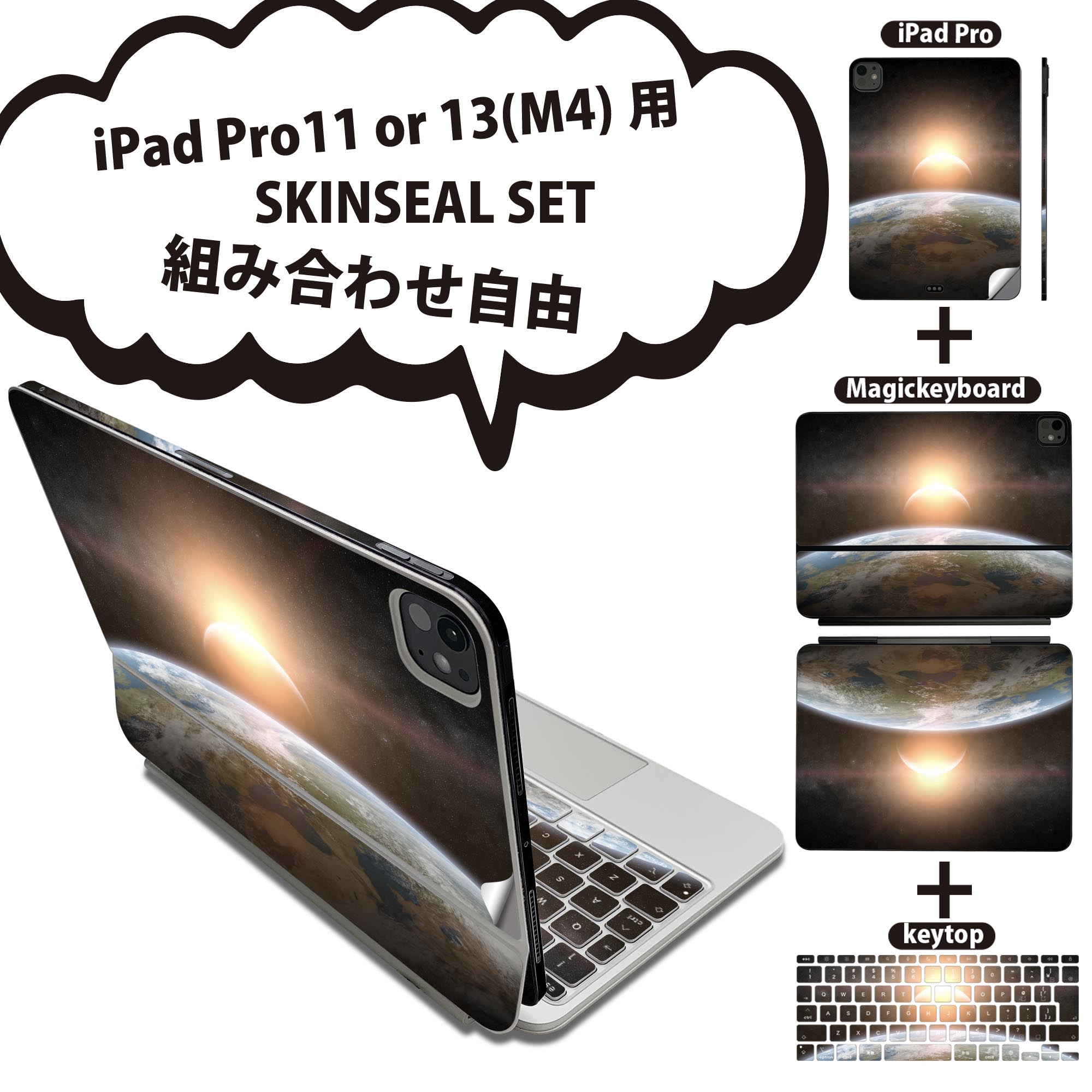 iPad Pro11(M4)用 iPad Pro13(M4)用 スã‚ンシール 11インム13インムMagic Keyboard keytop 2024年発売 第5世代 対応 å„種セット 組ã¿åˆã‚ã›è‡ªç”± å…¨é¢ ãƒ•ãƒ« å‰é¢ èƒŒé¢ ä¿è·ã‚·ãƒ¼ãƒ« 人気 宇宙 åœ°çƒ å¤ªé™½ 006115