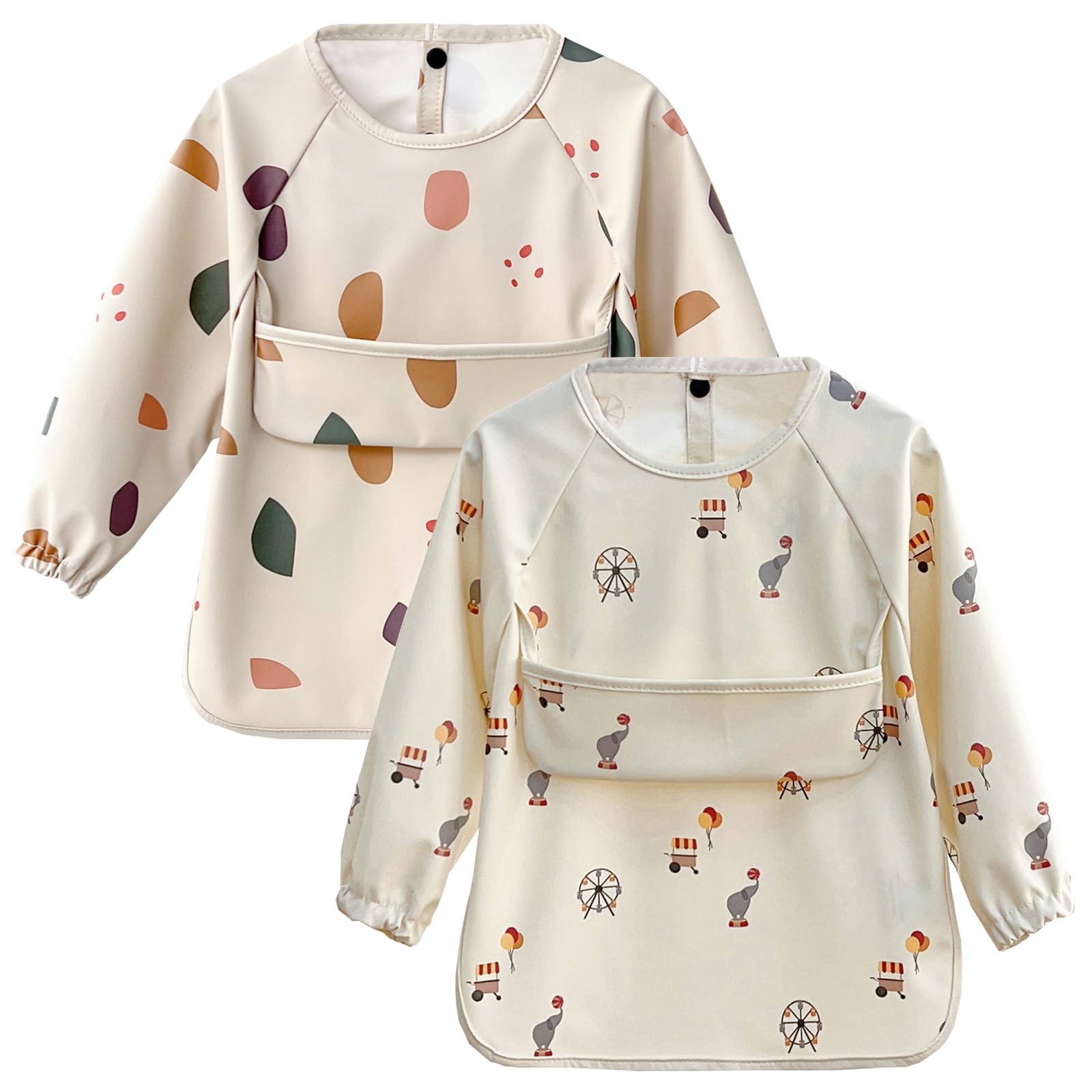 ã€é€æ–™ç„¡æ–™ã€‘[GoUseGo] ãŠé£Ÿäº‹ã‚¨ãƒ—ãƒãƒ³ ベビー 長袖 離乳食エプãƒãƒ³ 2枚セット 防水 食事用エプãƒãƒ³ 防水 赤ã¡ã‚ƒã‚“ 食事スタイ 女ã®å ç”·ã®å å¹¼å…用 エプãƒãƒ³ 1æ³ 2æ³ 3æ³ 4æ³ 5æ³ 6æ³ ã‚¹ãƒ¢ãƒƒã‚¯ åä¾› ã‚ッズ ä¿è‚²åœ’ 幼稚園用 色:ゾウー石ã€ã‚µã‚¤ã‚ºï¼šM
