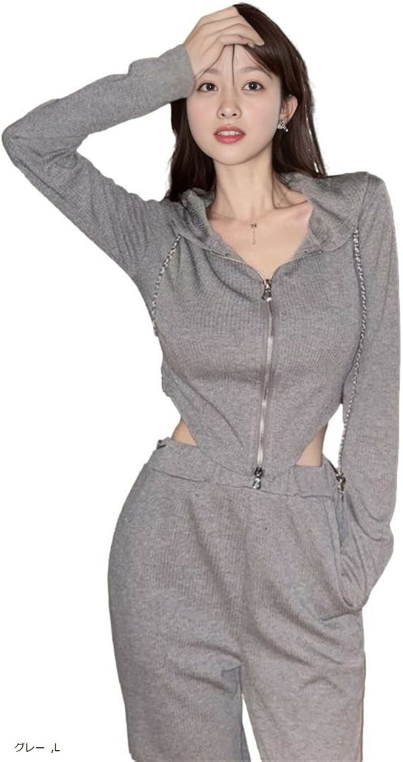 ジャージ レディース 上下 セット ジップアップ パーカー ãƒãƒ³ã‚°ãƒ‘ンツ 大人 カジュアル 人気 セットアップ 韓国 ファッション スウェット éƒ¨å±‹ç€ ã‹ã‚ã„ㄠルームウェア (グレー, L)