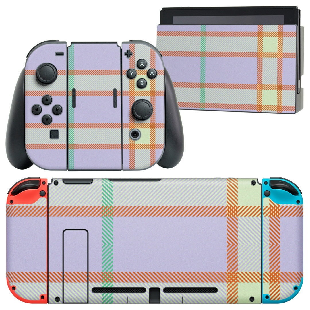 igsticker Nintendo Switch 用 デザインスキンシール 任天堂 ニンテンドー スイッチ 専用 本体ドック Joy-Con Joycon ジョイコン 専用 ゲーム機 カバー アクセサリー フィルム ステッカー 003886 チェック オレンジ 紫