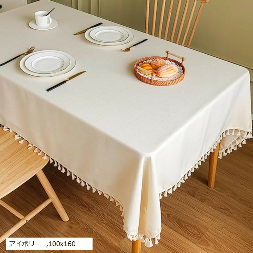 テーブルクロス 北欧 布生地なのに水を弾く魔法の質感 長方形 正方形 撥水 防水 お洒落 可愛い 100x160cm (アイボリー, 100x160)