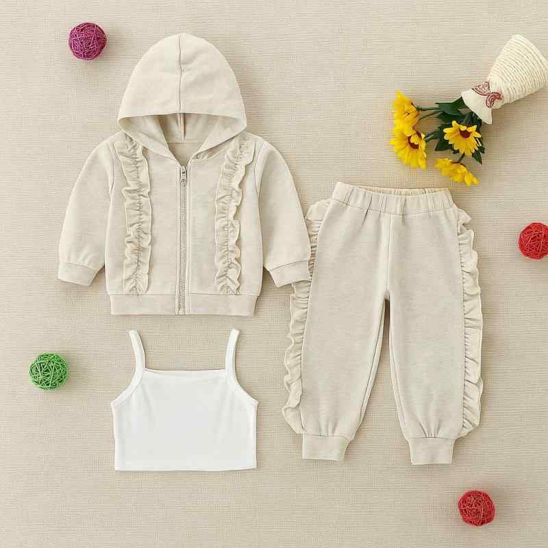 セットアップ ã‚ッズ 女ã®å カジュアル フード付ã 長袖トップス ベスト ãƒãƒ³ã‚°ãƒ‘ンツ 3点セット ç¶¿ コットン オフホワイト 秋冬