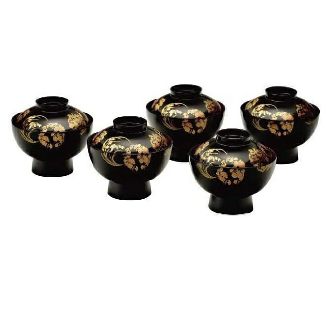 会津漆器・会津塗 雑煮椀 é»’ 花丸五å›å(5客組)