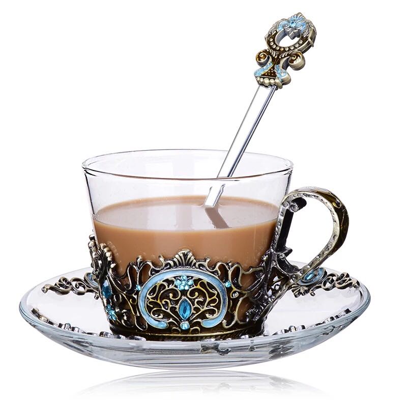 ガラス製ティー・コーヒーカップセットカップ&ソーサー1客 花柄 姫系雑貨