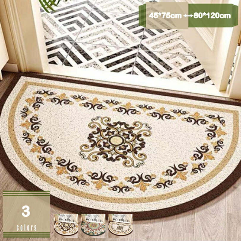 玄関マット ドアマット PVC åŠå††å½¢ 花柄 北欧風 è¶³æ‹ãマット å»Šä¸‹æ•·ã æ³¥é™¤ã‘ ã‚ッãƒãƒ³ 室内 室外 ルーム水洗ãˆã‚‹ 滑りæ¢ã‚ è€ä¹…性 大ãã‚ ãŠæ‰‹å…¥ã‚Œç°¡å˜ カットã§ãã‚‹