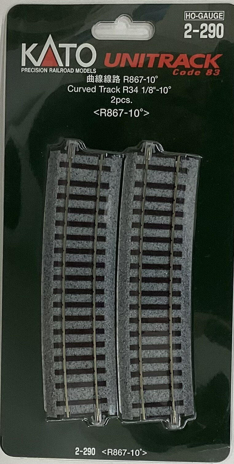 ã€ä¸å¤ã€‘HOゲージ KATO(カトー) 2-290 曲線線路 R867-10° (2本入) ã€A´】 ※パッケージ傷ã¿