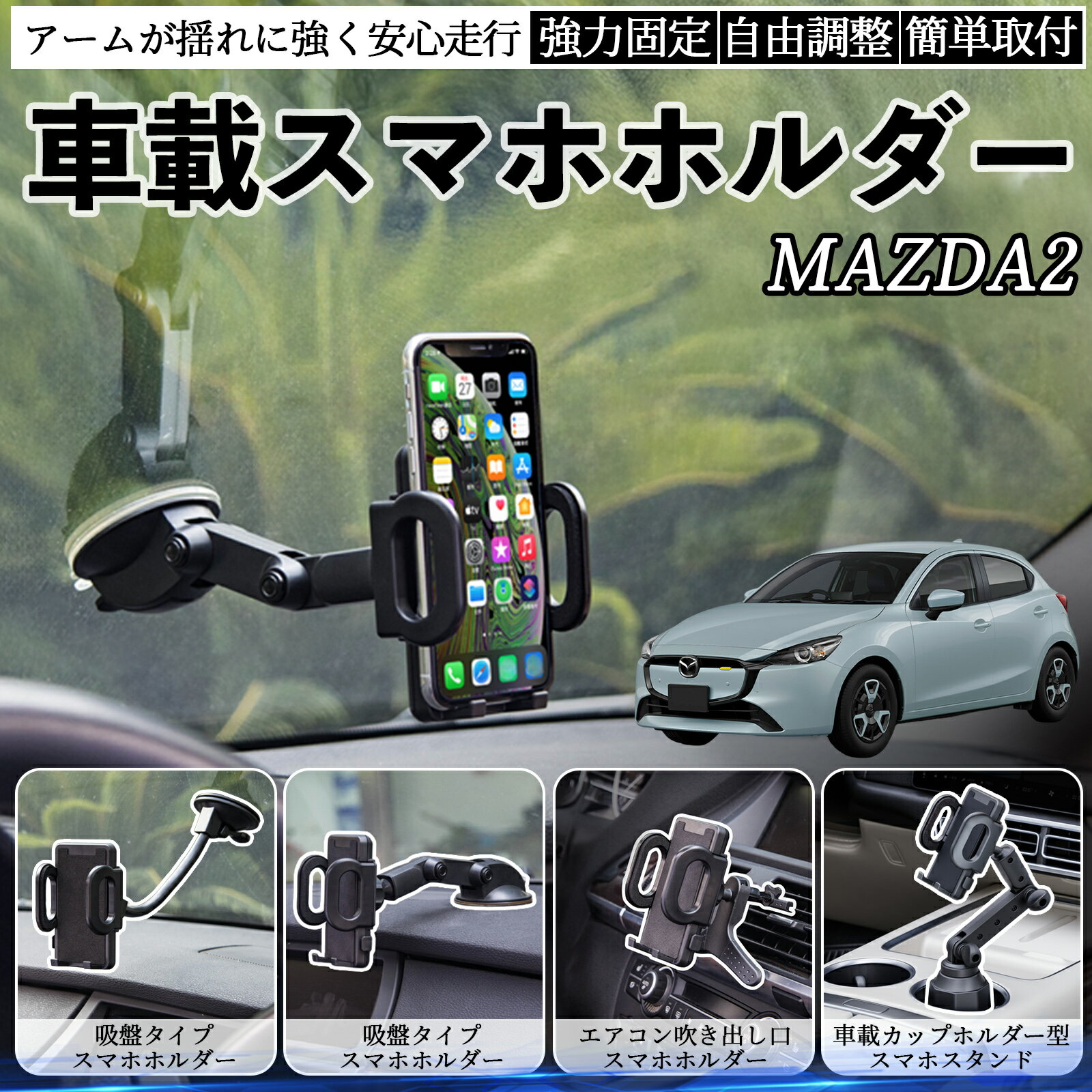 ã€ãƒã‚¤ãƒ³ãƒˆ5å€ é€æ–™ç„¡æ–™ã€‘マツダ MAZDA2 車載ホルダー スマホホルダー スマホスタンド å¸ç›¤å¼ 超強力å¸ç›¤ å¹ã出ã—å£ æŠ˜ã‚ŠãŸãŸã¿å¼ 自由調節 TiCar