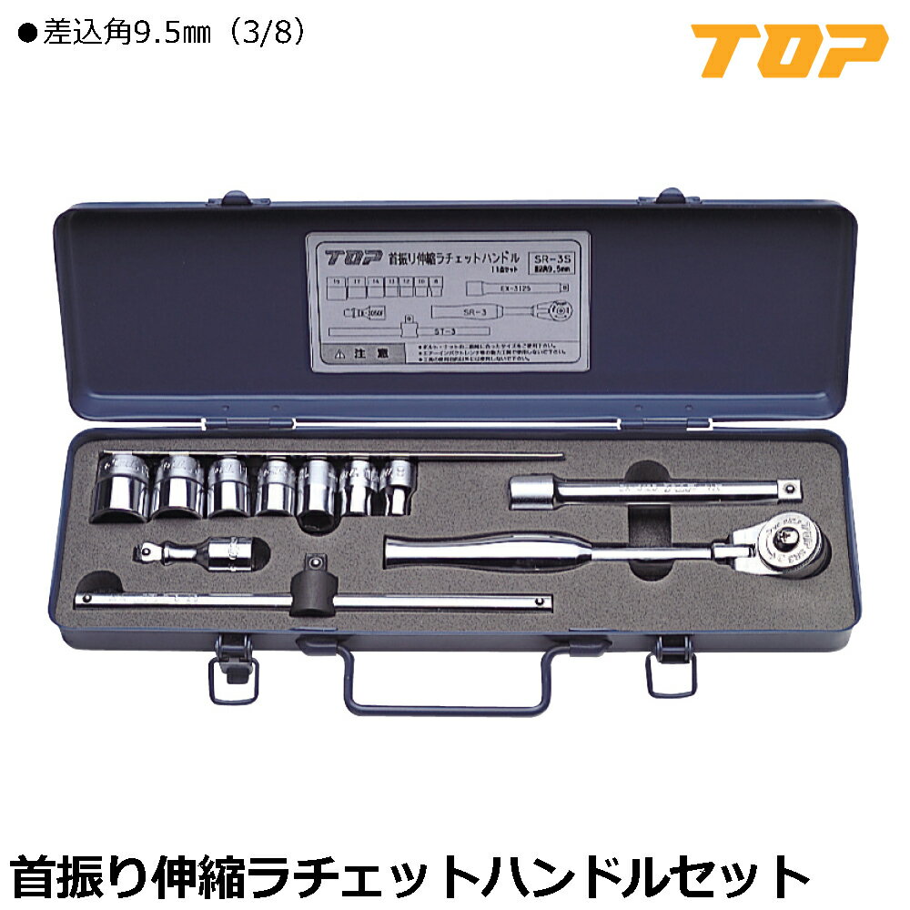 TOP 首振り伸縮ラãƒã‚§ãƒƒãƒˆãƒãƒ³ãƒ‰ãƒ«ã‚»ãƒƒãƒˆ 12点 差込角9.5mm (3/8") SR-3S トップ工æ¥