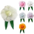 コサージュ カメリア 花柄 チェック柄 ドット 水玉 カジュアル バッグ 帽子 ハット Tシャツ ワンポイント 安全ピン 日本製 シンプル カメリア ミニサイズ