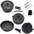 アウトドア クッカーセット 8点 ã‚¢ãƒ«ãƒŸé‹ ãƒ•ãƒ©ã‚¤ãƒ‘ãƒ³ ケトル カトラリー åŽç´è¢‹ä»˜ ã‚ャンプ BBQ 登山 è»½é‡ ãƒ–ãƒ©ãƒƒã‚¯ SD-CK001