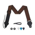 ウクレレ エレ゠ギター クラシック ギター用ピック ホルダー付ãギター ストラップ ブラウン