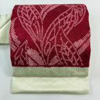 美品 名古屋帯 優品 葉柄 地紋 絞り えんじ色 正絹 中古 在庫一掃
