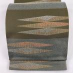 袋帯 美品 秀品 幾何学 金糸 深緑 六通 正絹 中古 在庫一掃