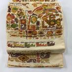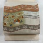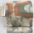 名古屋帯 優品 幾何学 クリーム 正絹 中古 在庫一掃