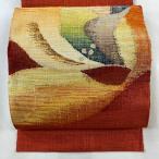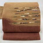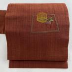名古屋帯 秀品 紬地 生り物 刺繍 赤茶 正絹 中古 在庫一掃
