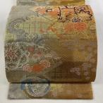 名古屋帯 美品 優品 花鳥 違い棚 金銀糸 箔 金色 正絹 中古 在庫一掃