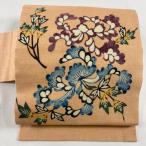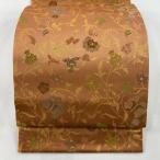 名古屋帯 秀品 草花 薄オレンジ 正絹 中古 在庫一掃