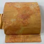 名古屋帯 優品 草花 箔 オレンジ 正絹 中古 在庫一掃