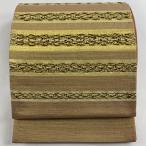 美品 袋帯 秀品 段縞 幾何学 金糸 箔 薄茶色 お太鼓柄 正絹 中古 在庫一掃