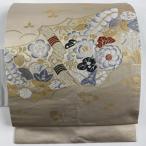 名古屋帯 秀品 辻が花柄 笹 箔 ベージュ 正絹 中古 在庫一掃