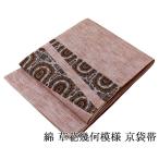名古屋帯 綿 草花 幾何 切り嵌め 紬 京袋帯 リサイクル 中古 九寸 カジュアル 着物 h4124