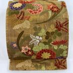 袋帯 秀品 能衣四季文 菊 刺繍 金糸 山吹茶色 六通 正絹 中古 在庫一掃
