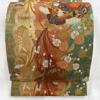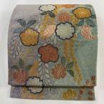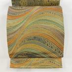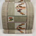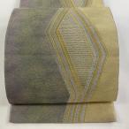 袋帯 秀品 幾何学模様 箔 灰緑 六通 正絹 中古 在庫一掃