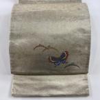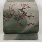 袋帯 秀品 紬地 紅梅 灰色 お太鼓柄 正絹 中古 在庫一掃