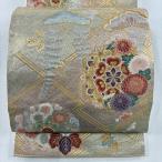 袋帯 秀品 露芝 ヱ霞 箔 クリーム お太鼓柄 正絹 中古 在庫一掃