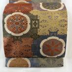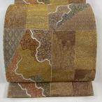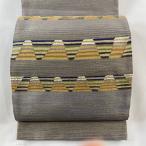 袋帯 美品 秀品 幾何学 金糸 灰茶 六通 正絹 中古 在庫一掃