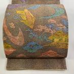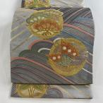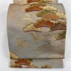 袋帯 秀品 鶴松 波 唐織 金糸 灰茶 六通 正絹 中古 在庫一掃