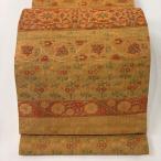 袋帯 美品 秀品 紬地 横段 花唐草 箔 山吹茶色 六通 正絹 中古 在庫一掃