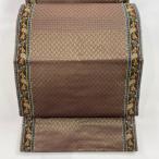 袋帯 秀品 葡萄唐草 網代 金糸 箔 茶色 六通 正絹 中古 在庫一掃