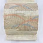 袋帯 美品 秀品 幾何学 金銀糸 ベージュ 六通 正絹 中古 在庫一掃