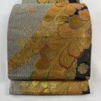 袋帯 秀品 花菱 唐草 箔 灰茶 六通 正絹 中古 在庫一掃