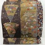袋帯 美品 秀品 花扇 草花 箔 金糸 金色 六通 正絹 中古 在庫一掃