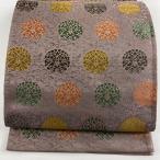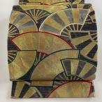 袋帯 秀品 扇 金糸 箔 灰色 六通 正絹 中古 在庫一掃