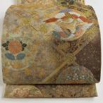 袋帯 秀品 鶴松 波 唐織 金糸 灰茶 六通 正絹 中古 在庫一掃