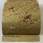 袋帯 美品 秀品 色紙 花鳥 金糸 箔 金色 お太鼓柄 正絹 中古 在庫一掃