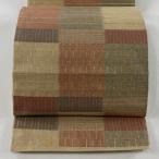 名古屋帯 秀品 紬地 幾何学模様 茶色 正絹 中古 在庫一掃