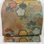 袋帯 秀品 菊 観世水 金糸 箔 ベージュ 六通 正絹 中古 在庫一掃